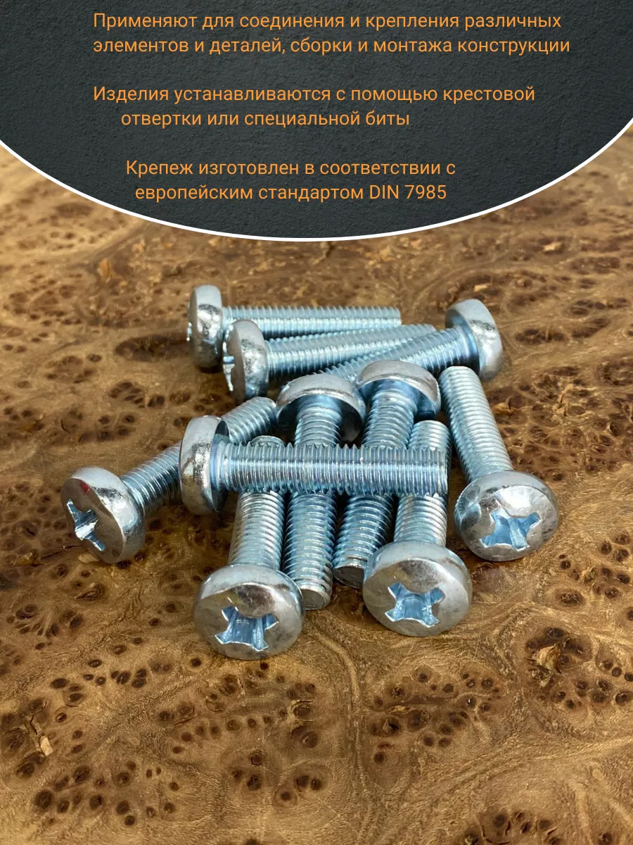 Винт с полукруглой головкой М8х35 ОЦ DIN7985, 10 шт.