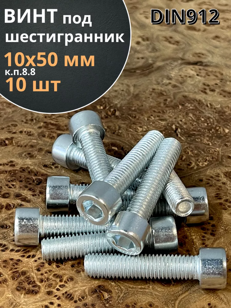 Винт под шестигранник ПР 10х50 мм ОЦ к.п.8.8 DIN912, 10 шт.