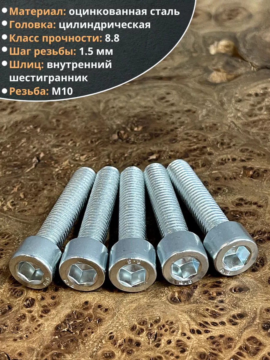 Винт под шестигранник ПР 10х55 мм ОЦ к.п.8.8 DIN912, 10 шт.