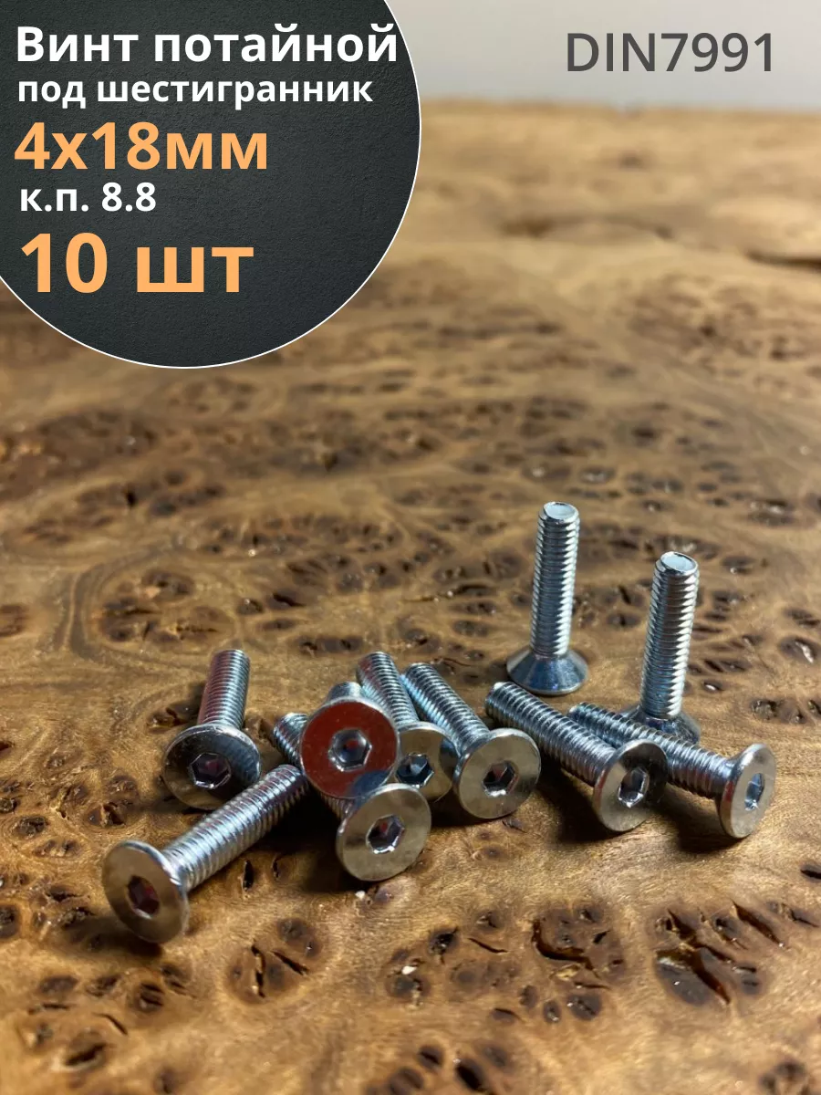 Винт потайной 4х18 под шестигранник ОЦ DIN7991,к.п.8.8 10 шт