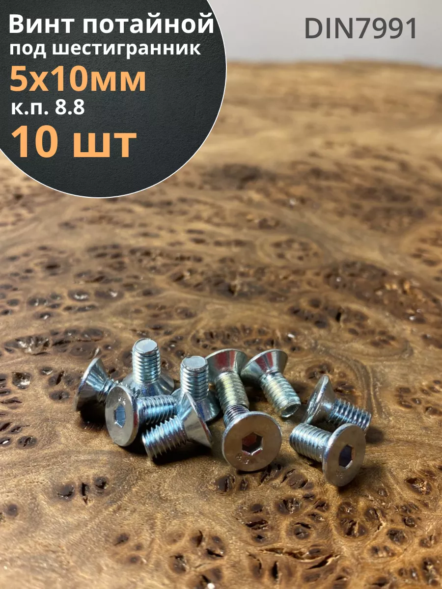 Винт потайной 5х10 под шестигранник ОЦ DIN7991,к.п.8.8 10 шт