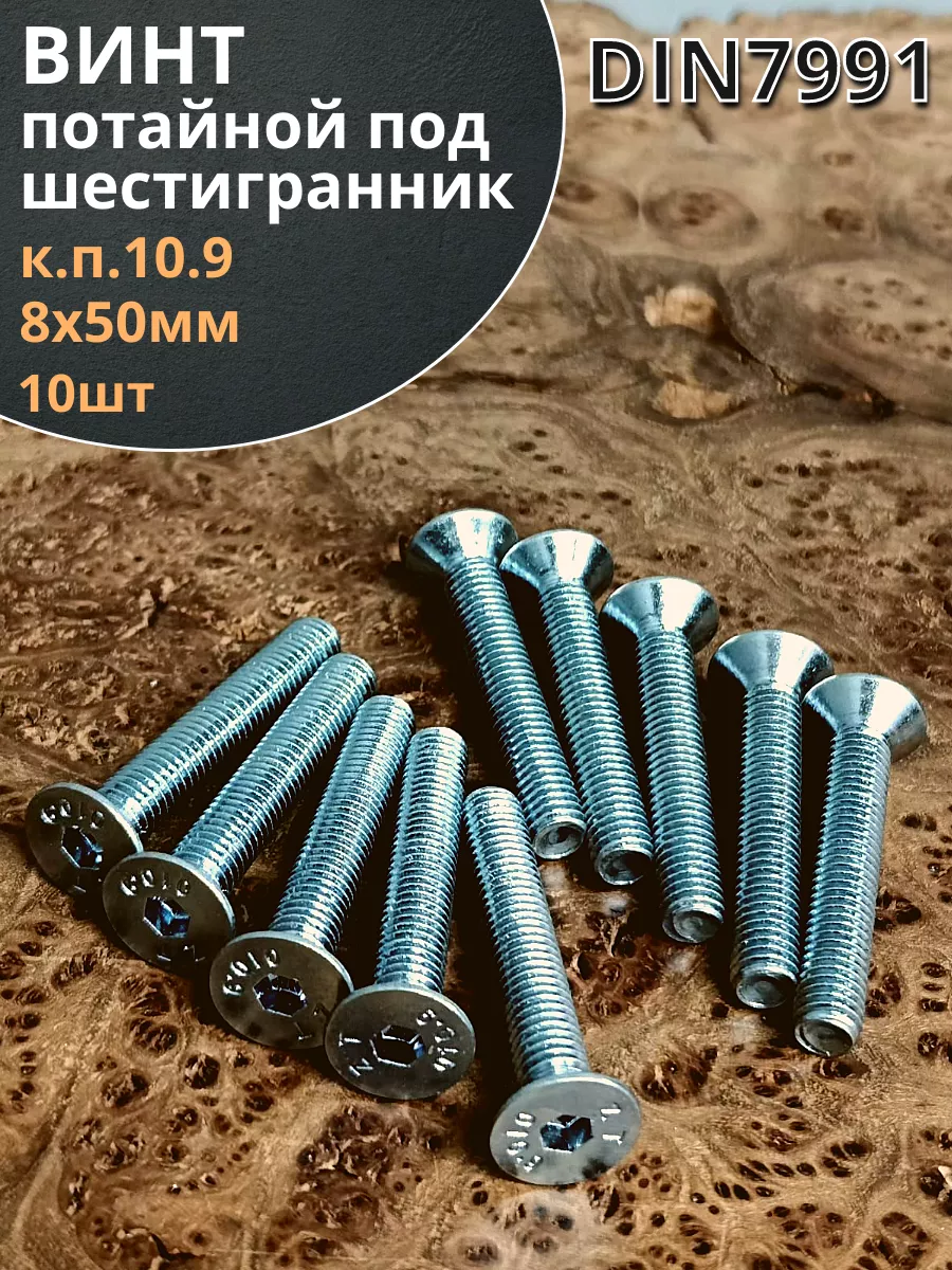 Винт потайной 8х50 под шестигранник ОЦ DIN7991к.п.10.9,10шт.