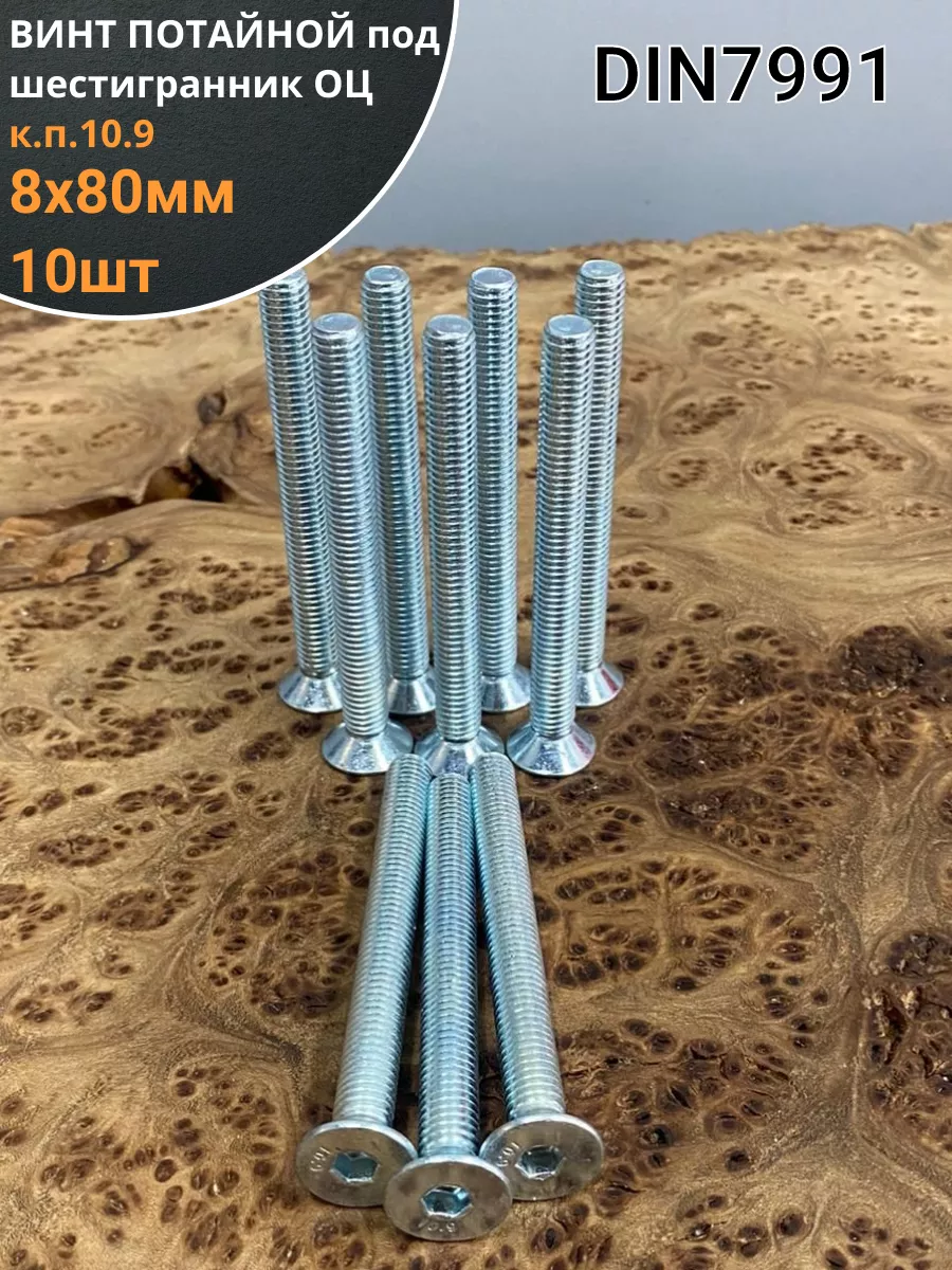 Винт потайной 8х80 под шестигранник DIN7991 к.п.10.9, 10 шт.