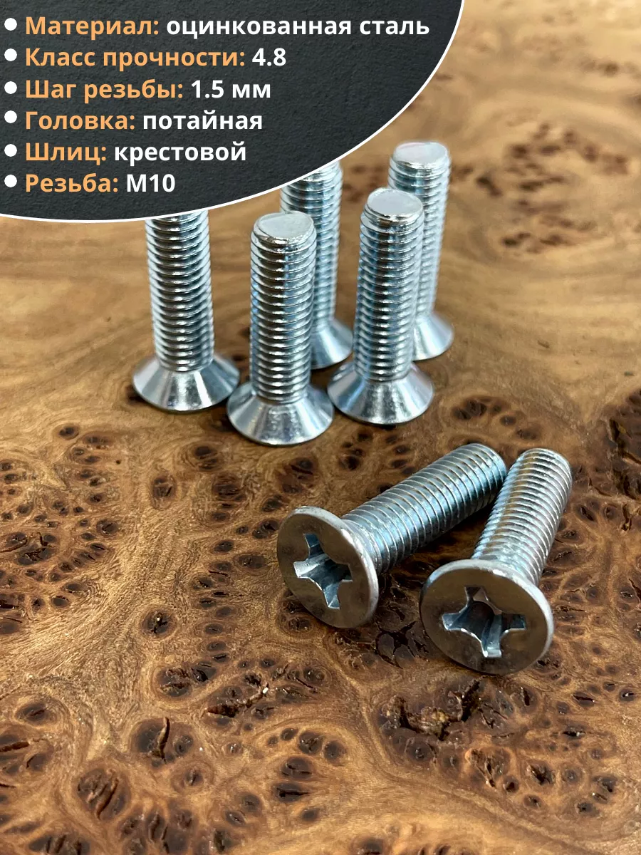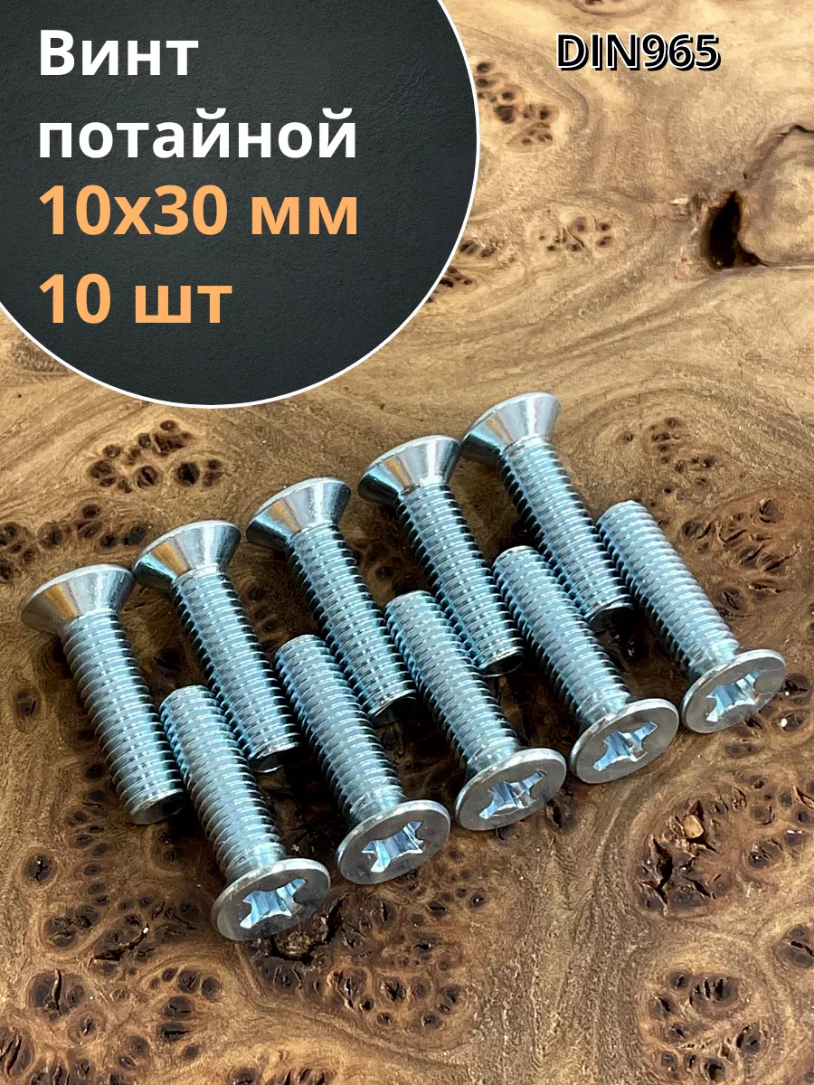 Винт потайной оцинкованный 10х30 DIN965, 10 шт.