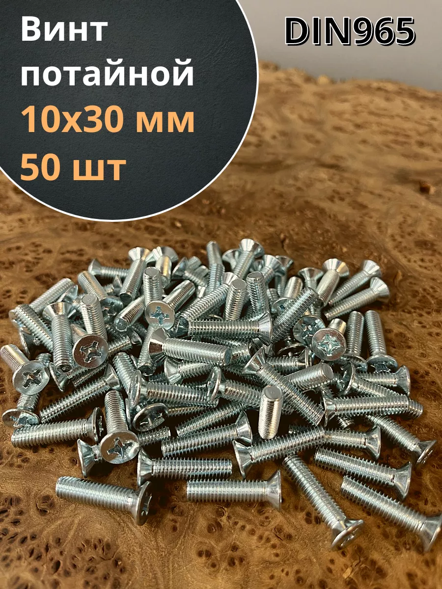 Винт потайной оцинкованный 10х30 DIN965, 50 шт.