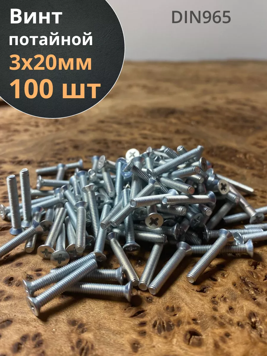 Винт потайной оцинкованный 3х20 DIN965, 100 шт.