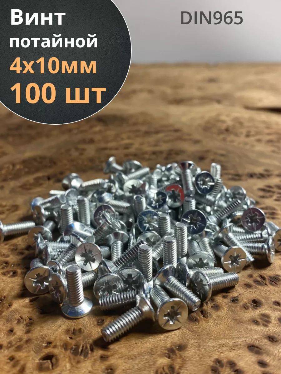 Винт потайной оцинкованный 4х10 DIN965, 100 шт.