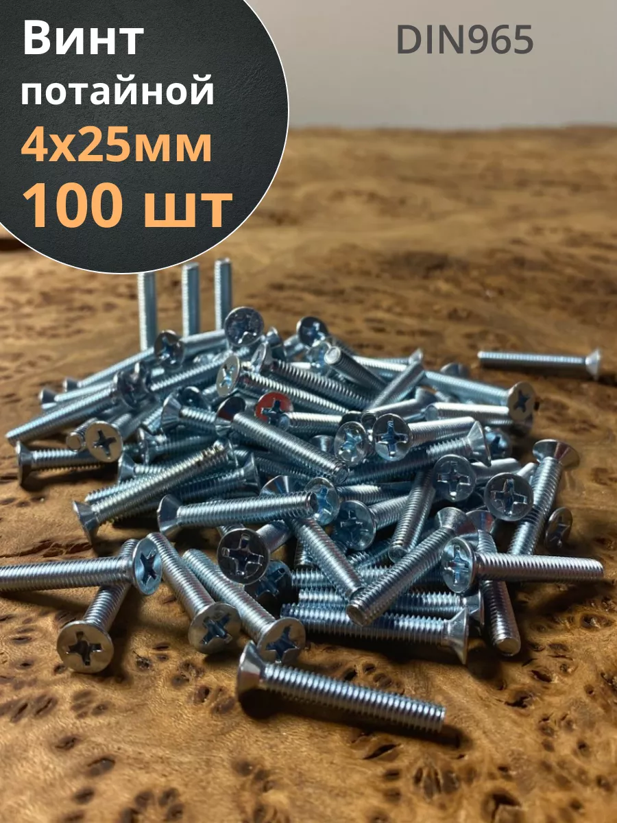 Винт потайной оцинкованный 4х25 DIN965, 100 шт.