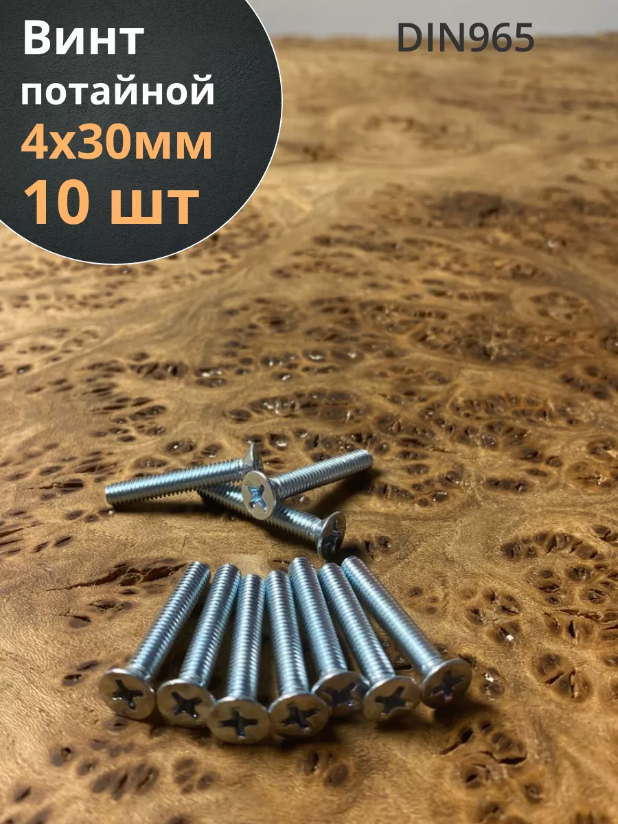 Винт потайной оцинкованный 4х30 DIN965, 10 шт.