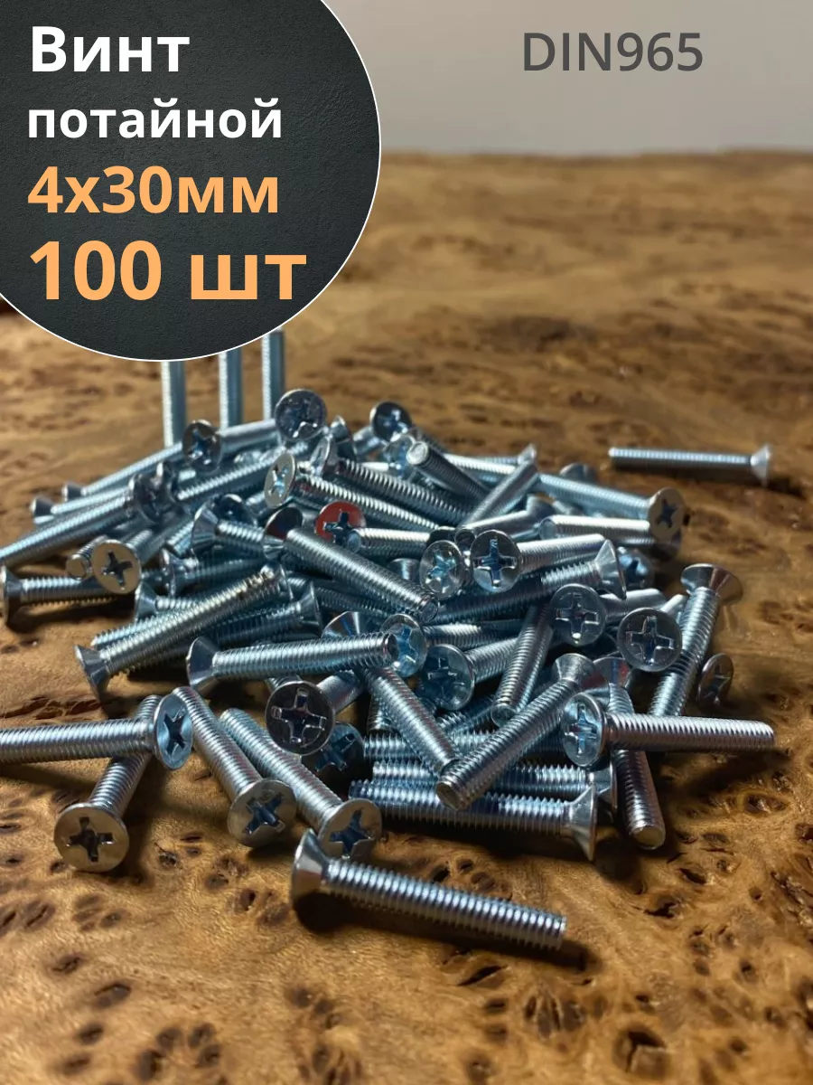 Винт потайной оцинкованный 4х30 DIN965, 100 шт.