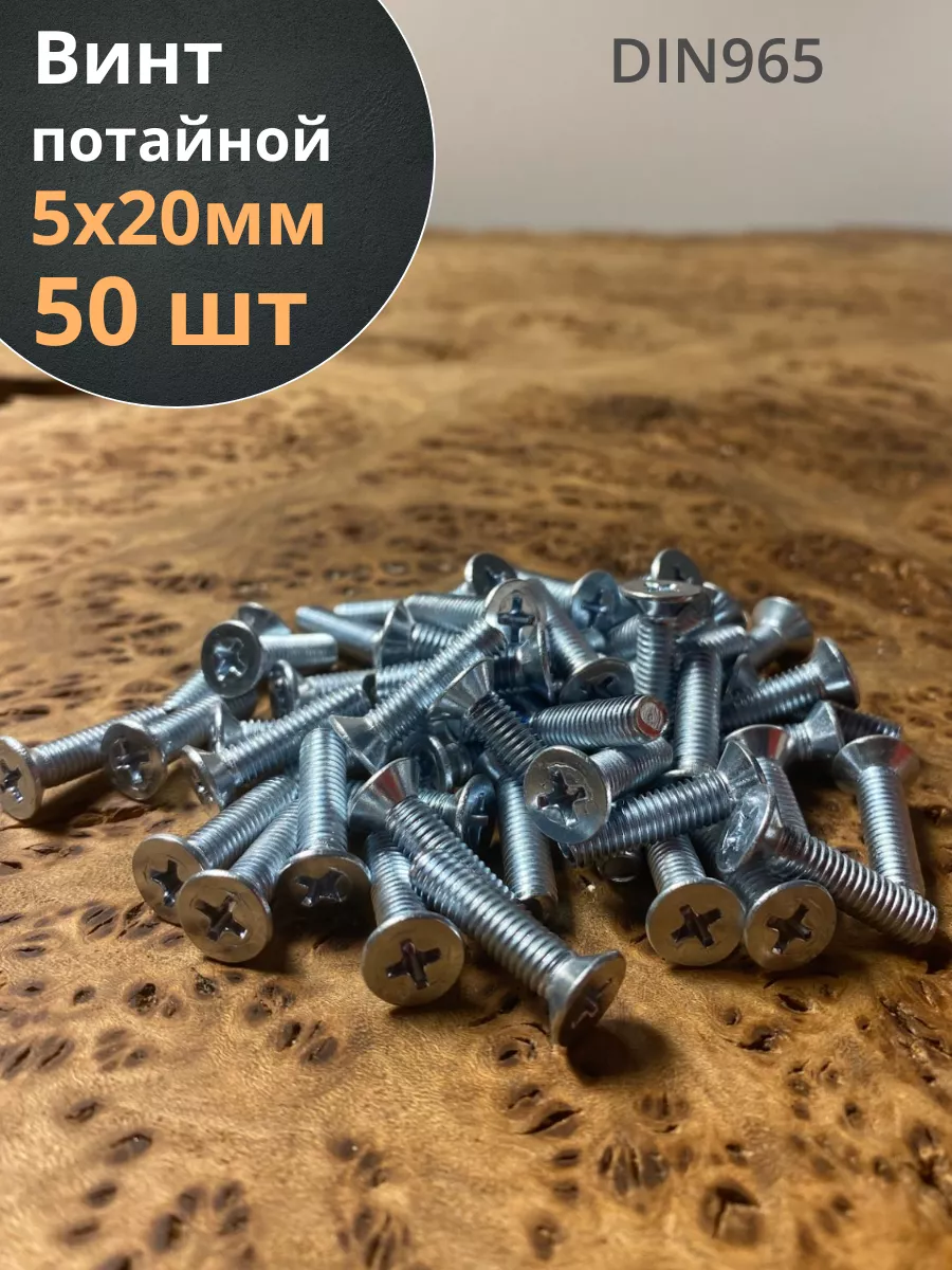 Винт потайной оцинкованный 5х20 DIN965, 50 шт.
