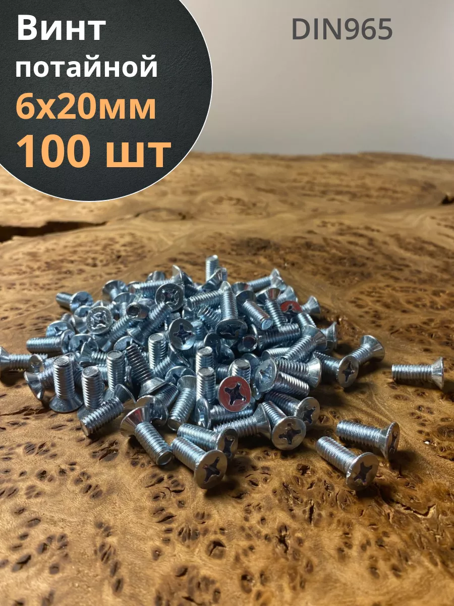 Винт потайной оцинкованный 6х20 DIN965, 100 шт.