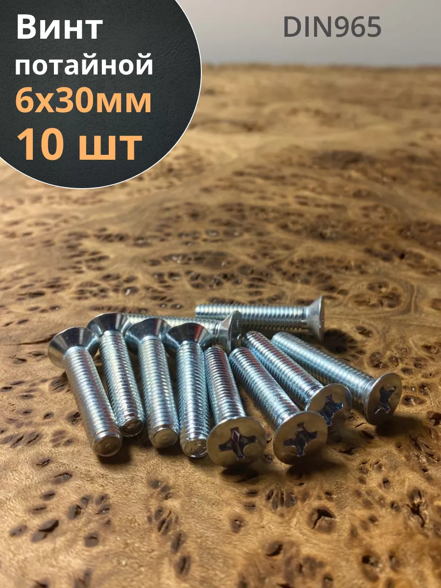 Винт потайной оцинкованный 6х30 DIN965, 10 шт.