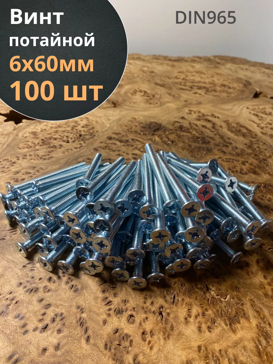 Винт потайной оцинкованный 6х60 DIN965, 100 шт.