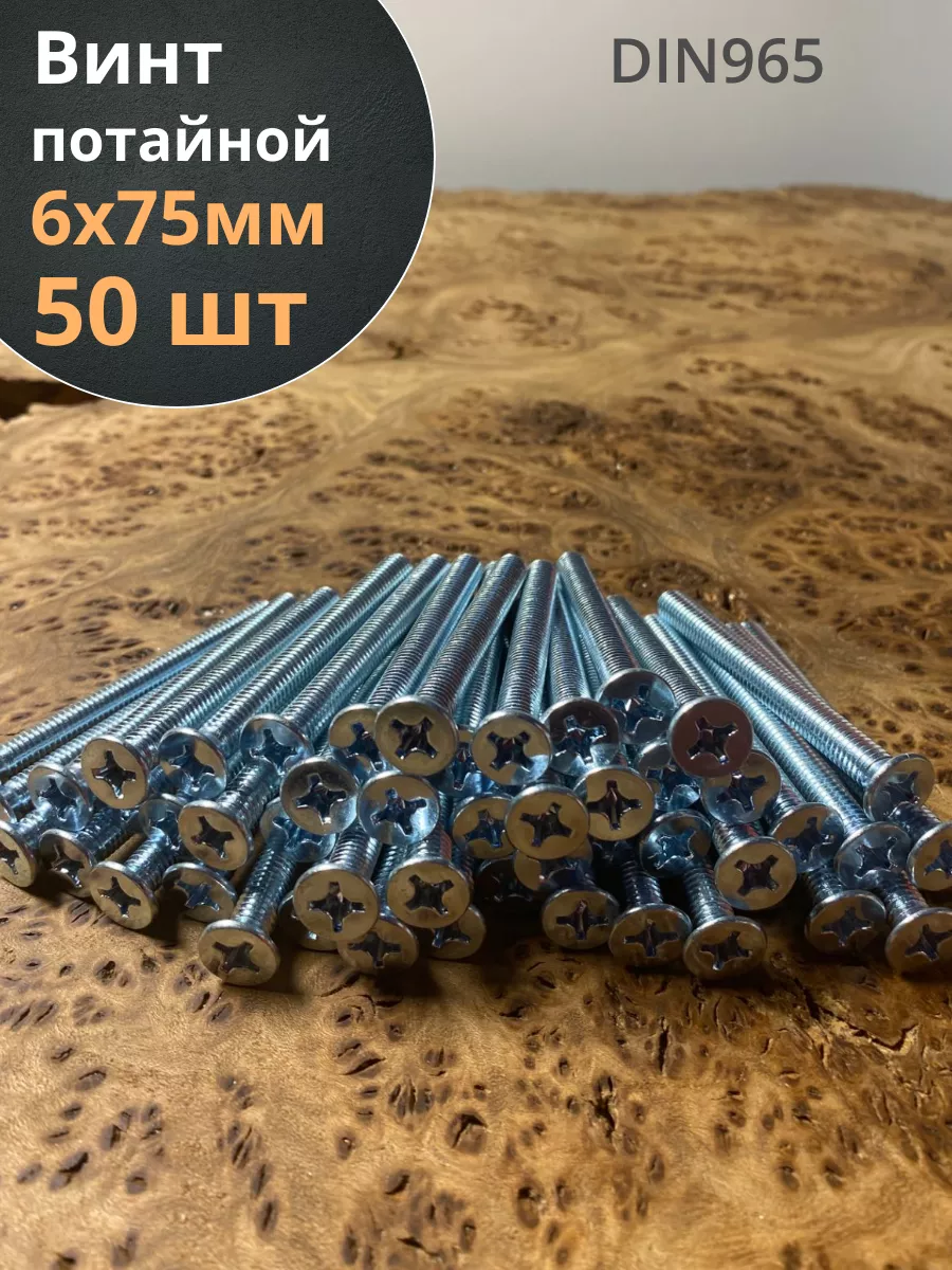 Винт потайной оцинкованный 6х75 DIN965, 50 шт.