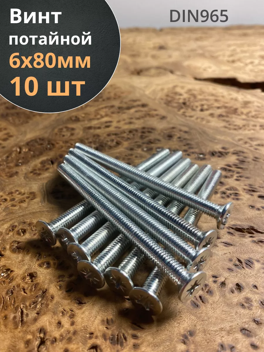 Винт потайной оцинкованный 6х80 DIN965, 10 шт.