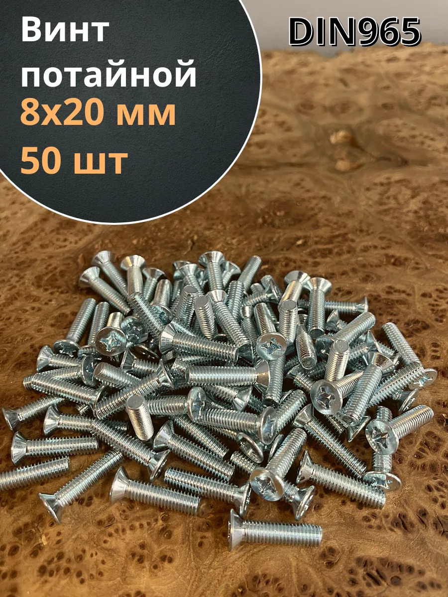 Винт потайной оцинкованный 8х20 DIN965, 50 шт.