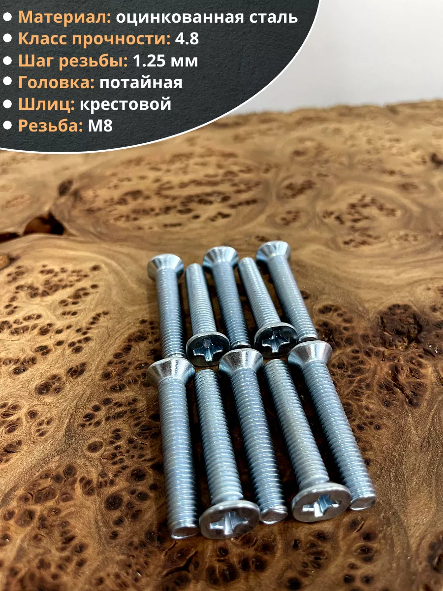 Винт потайной оцинкованный 8х35 DIN965, 50 шт.