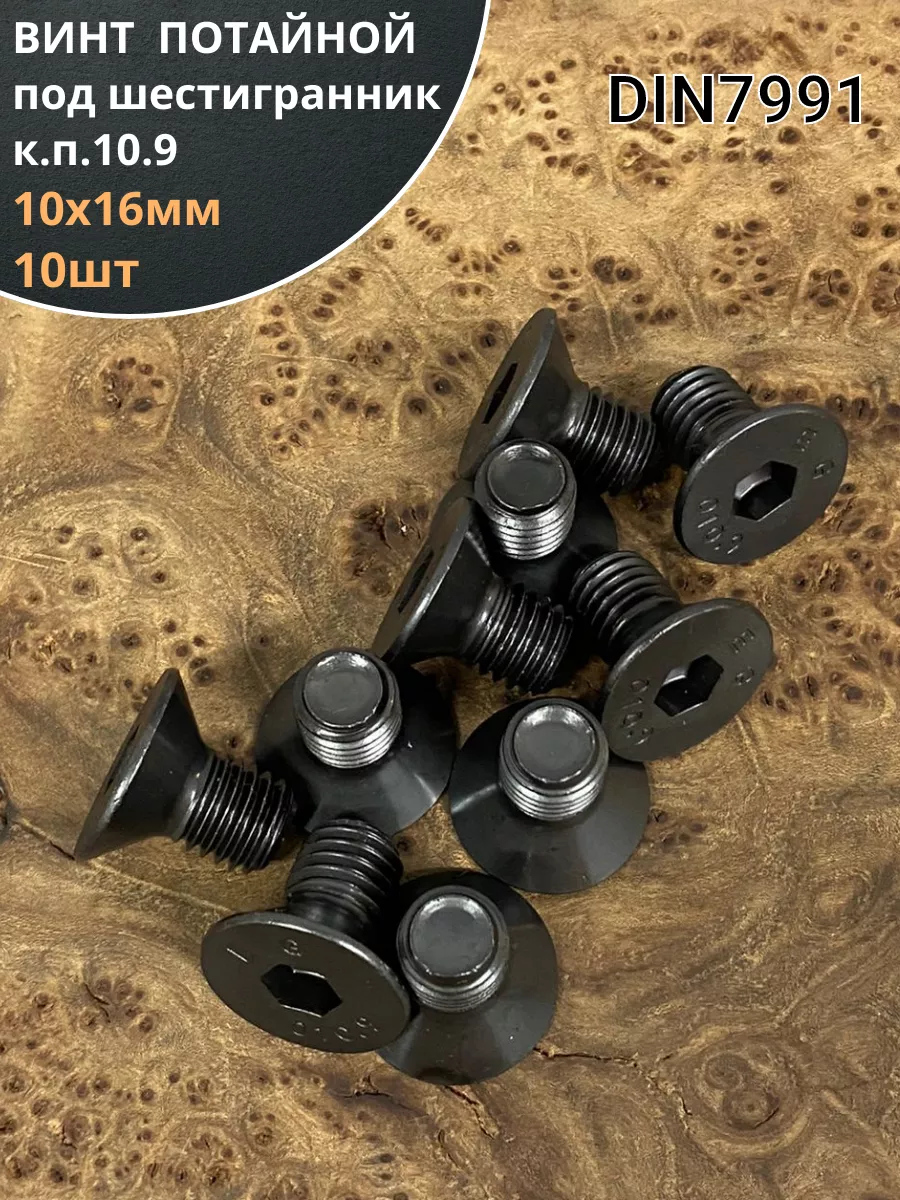 Винт потайной под шестигранник 10х16 DIN7991 к.п.10.9,10 шт.