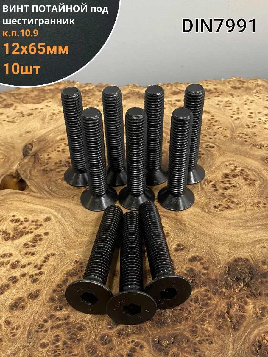 Винт потайной под шестигранник 12х65 DIN7991 к.п.10.9,10 шт.