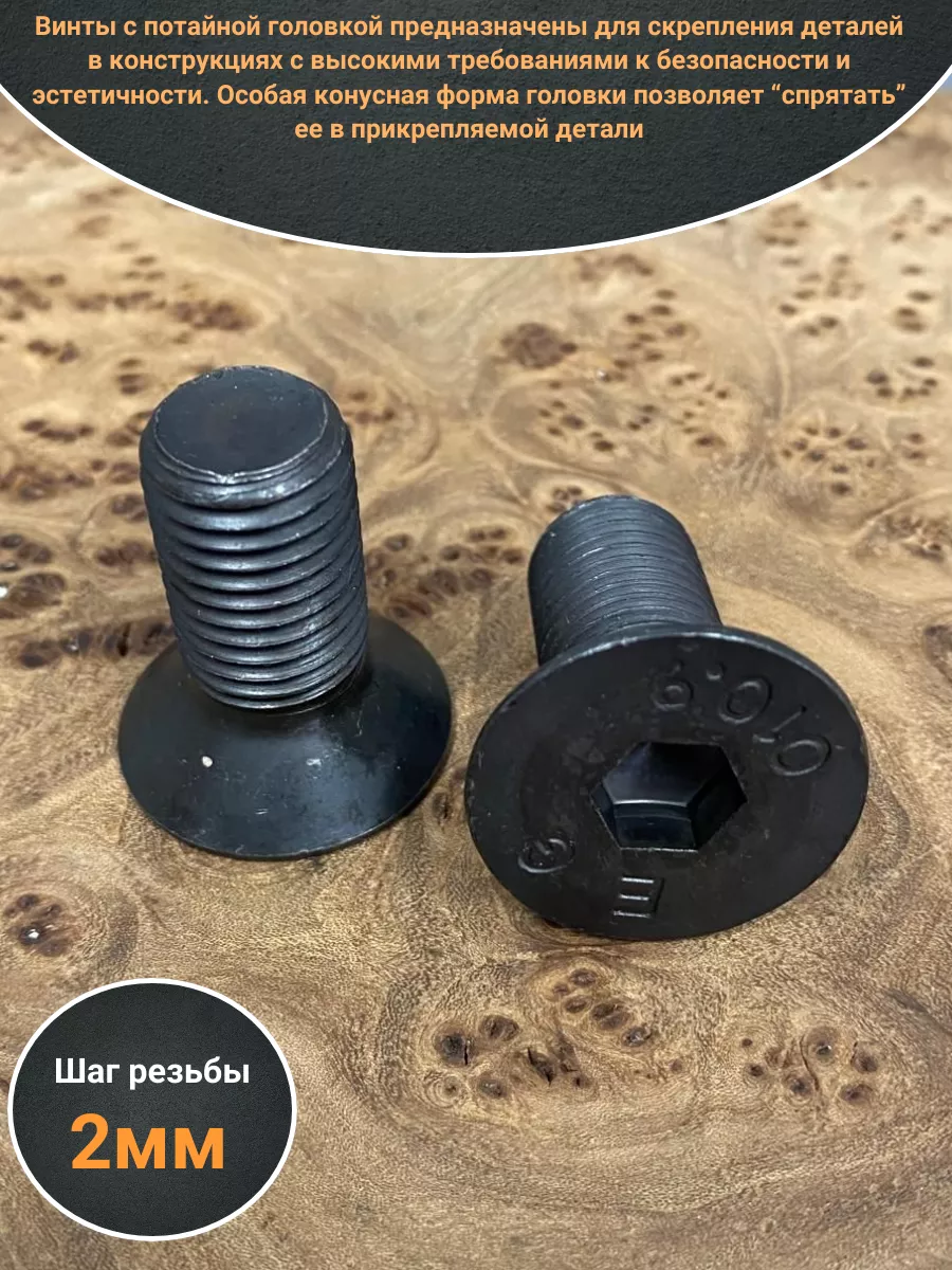 Винт потайной под шестигранник 16х40 DIN7991 к.п.10.9, 4шт