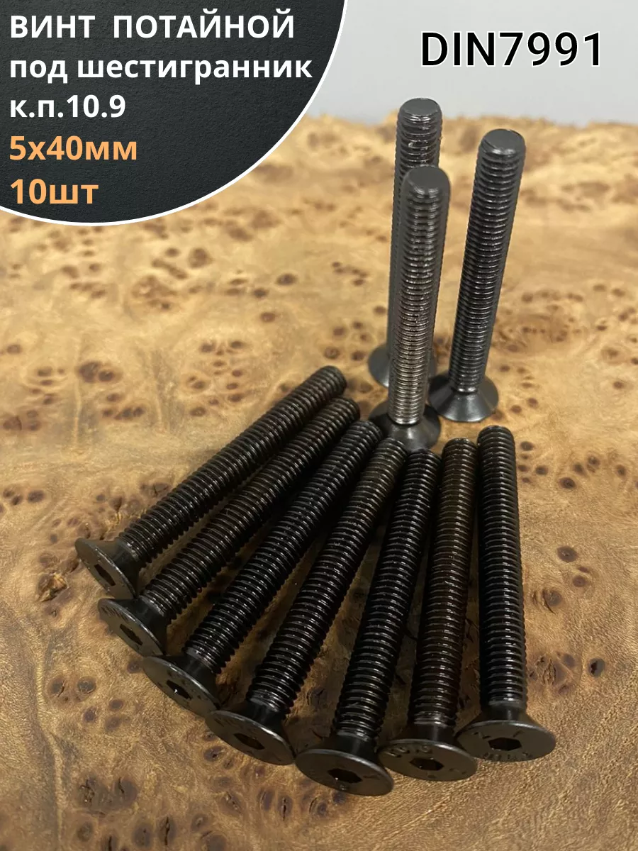 Винт потайной под шестигранник 5х40 DIN7991 к.п.10.9, 10 шт.