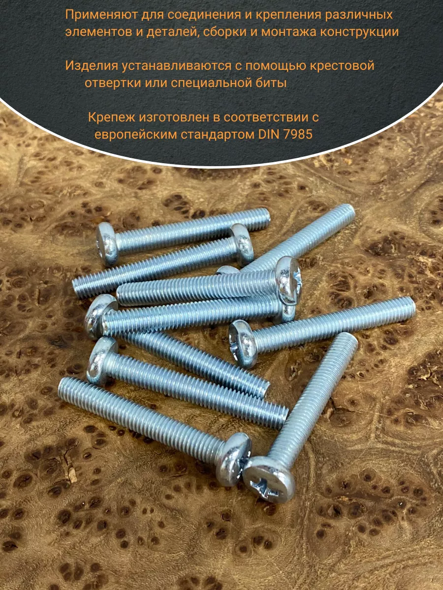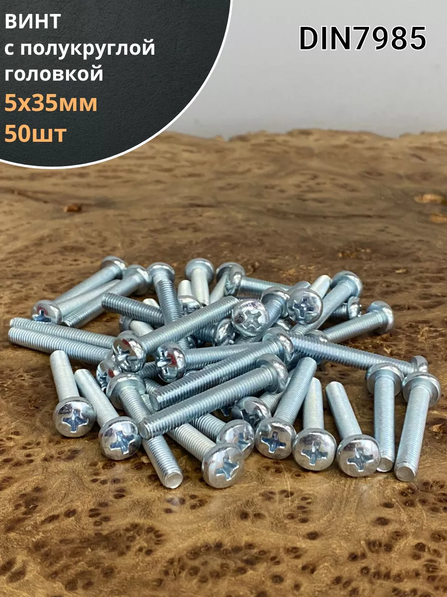 Винт с полукруглой головкой М5х35 ОЦ DIN7985, 50 шт.