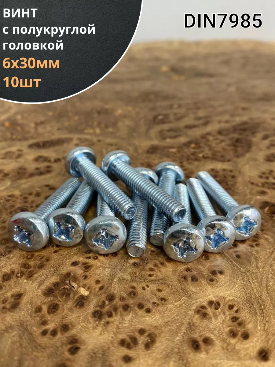 Винт с полукруглой головкой М6х30 ОЦ DIN7985, 10 шт.