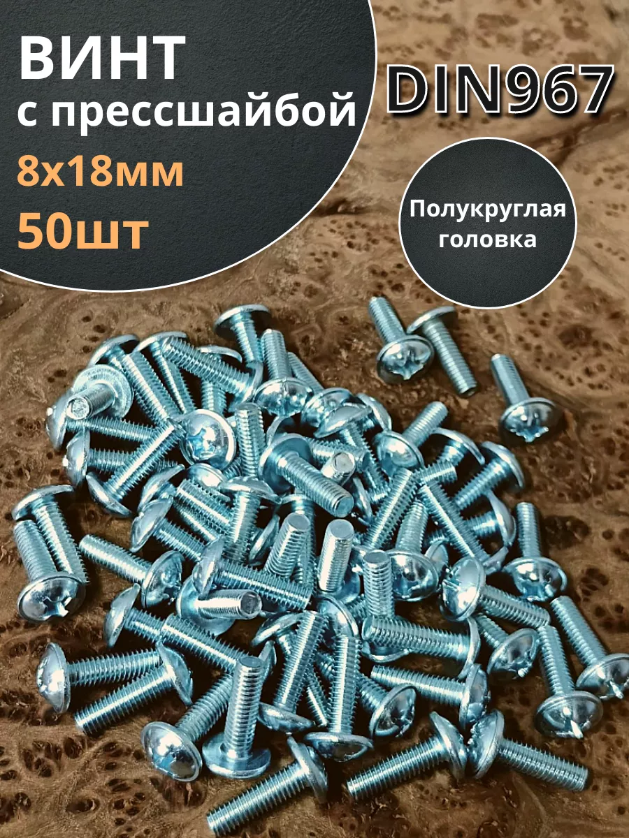 | Винт с прессшайбой М8х18 полукруглая головка DIN967, 10 шт. | вп818 | 1 шт. |