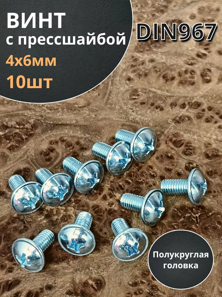 Винт с прессшайбой М4х6 полукруглая головка DIN967, 10 шт.
