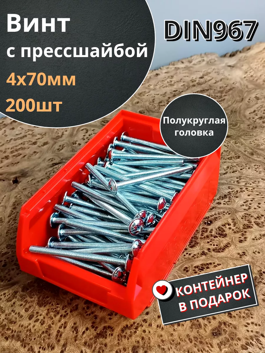 Винт с прессшайбой М4х70 DIN967, 200 шт. в контейнере