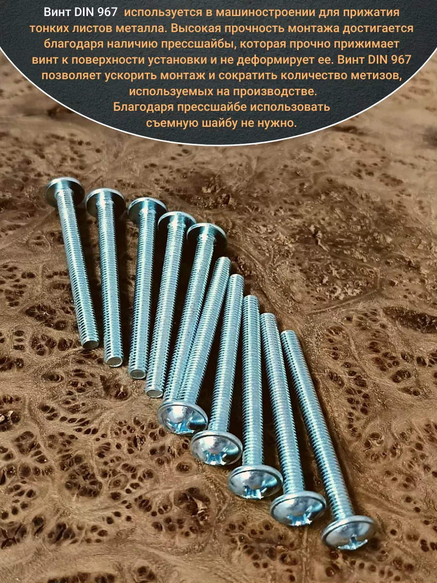 | Винт с прессшайбой М4х70 мебельный DIN967, 10 шт. | вм470мф | 1 шт. |