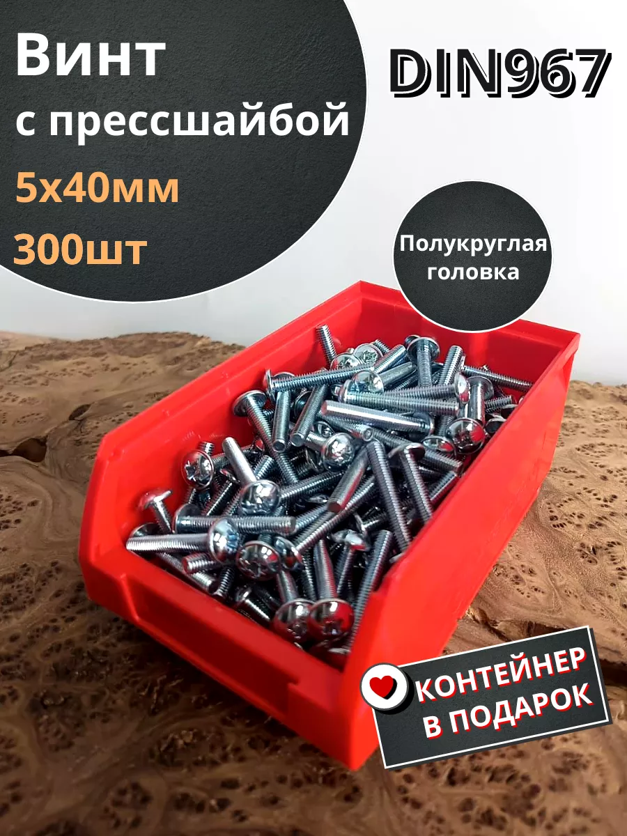 Винт с прессшайбой М5х40 DIN967, 300 шт. в контейнере