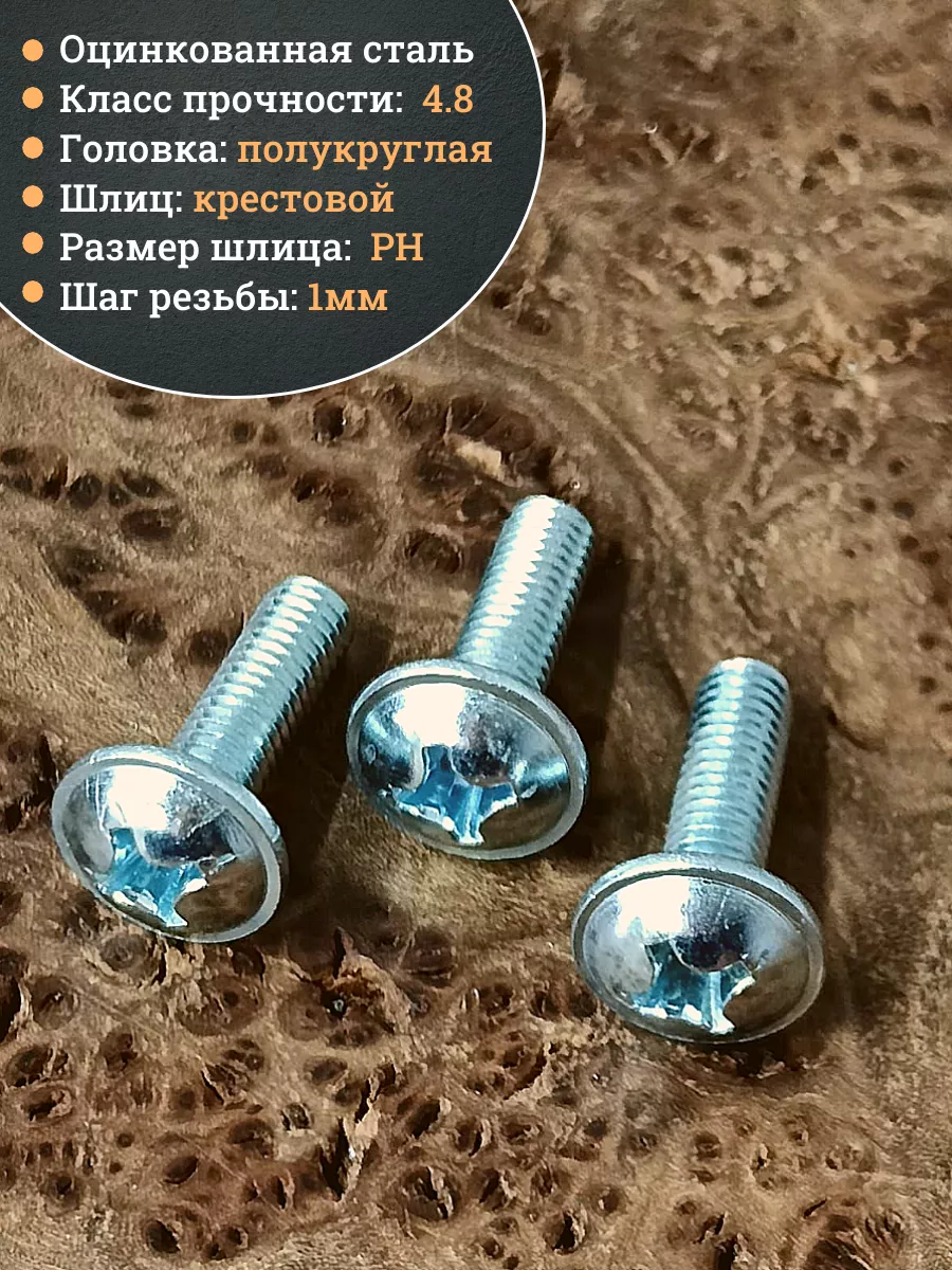 Винт мебельный с полукруглой головкой и прессшайбой, применяется при строительных работах, в машиностроении. Используется для монтажа из металла, пластика и древесины твердых пород. Монтаж производится в заранее подготовленное отверстие с применением гайки соответствующего диаметра, или применятся для вкручивания в различные резьбовые отверстия при монтаже. Винт мебельный DIN 967 — это универсальное крепежное изделие в виде стержня с наружной резьбой, выполненной по всей длинне. Головка крепежа в виде полусферы с широкими полями, на головке имеются пазы под крестовую отвертку. При проведении монтажа можно использовать как PZ, так и SL отвертки или насадки, что делает крепеж универсальным.