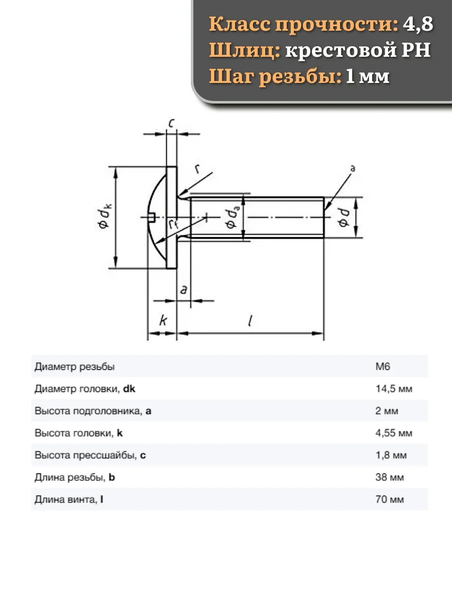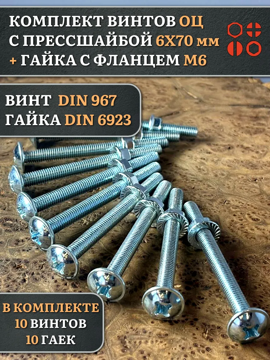 Винт с прессшайбой М6х70 DIN967 с гайкой фланец, 10 шт.