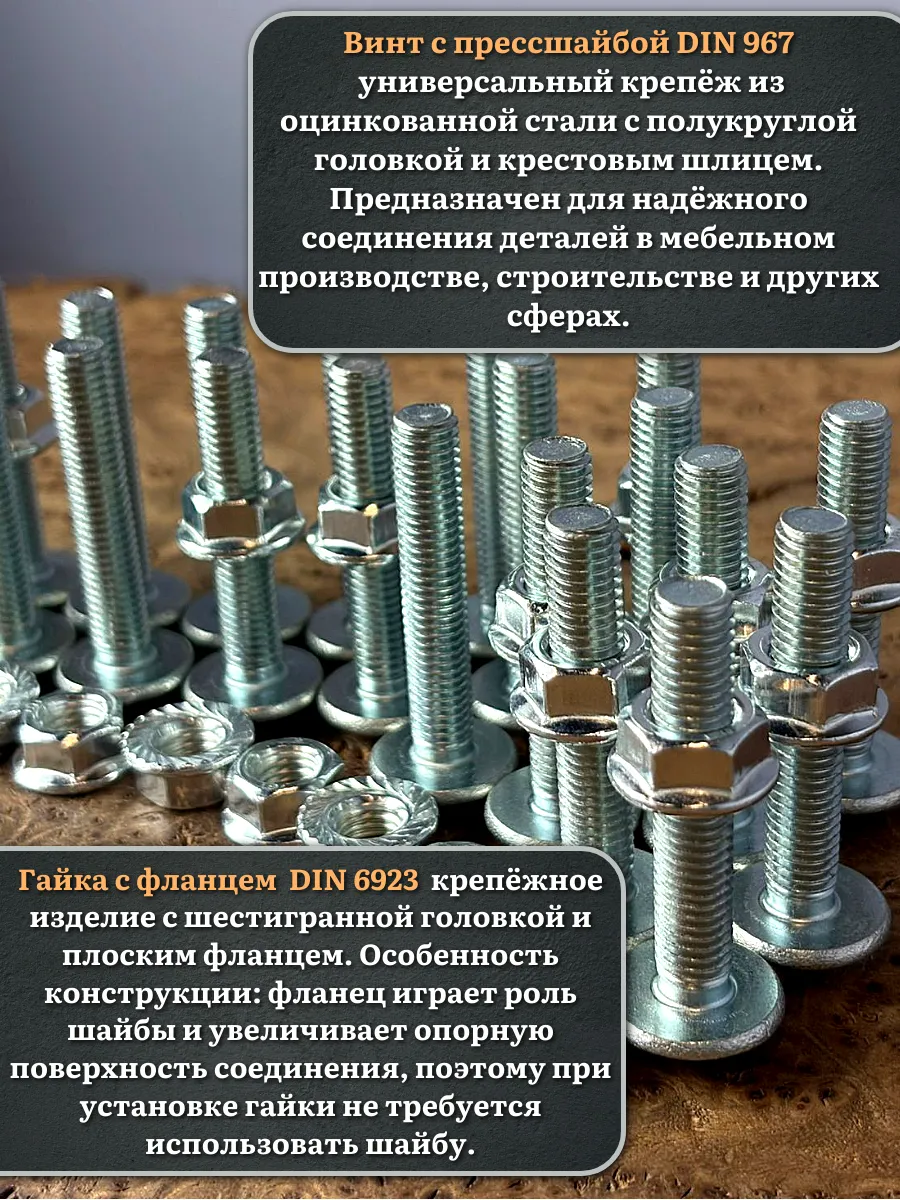 Винт с прессшайбой М8х50 DIN967 с гайкой фланец, 20 шт.
