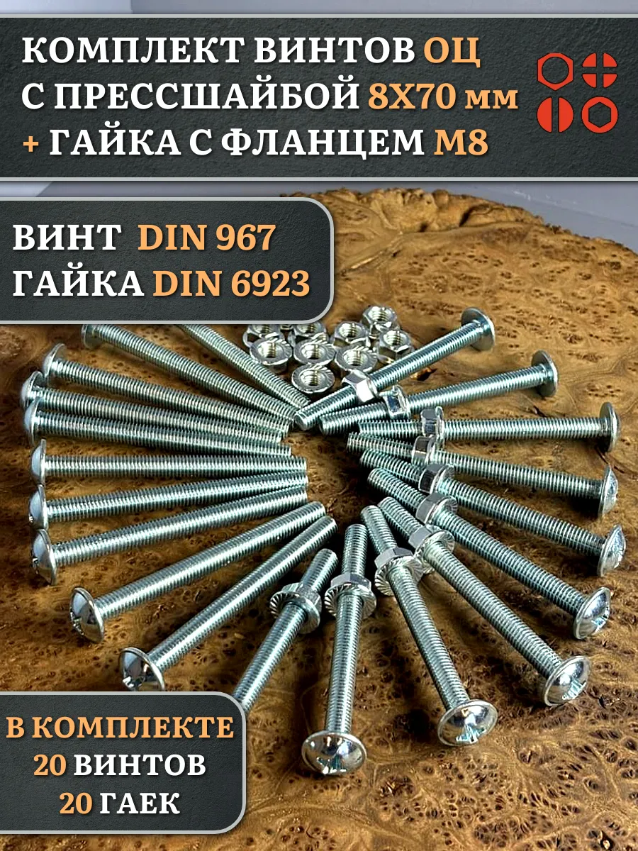 Винт с прессшайбой М8х70 DIN967 с гайкой фланец, 20 шт.