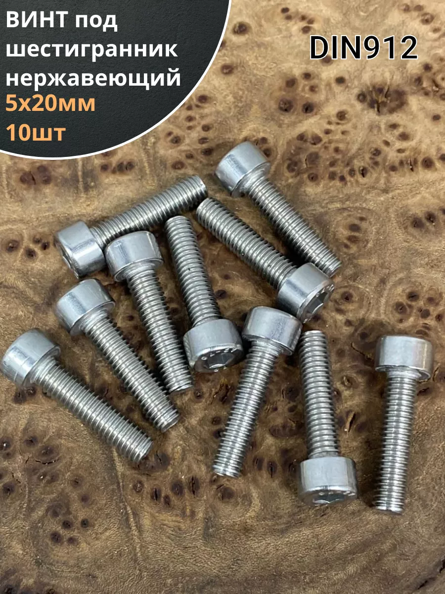 Винт нержавеющий шестигранник М5х20, DIN 912, 10 шт