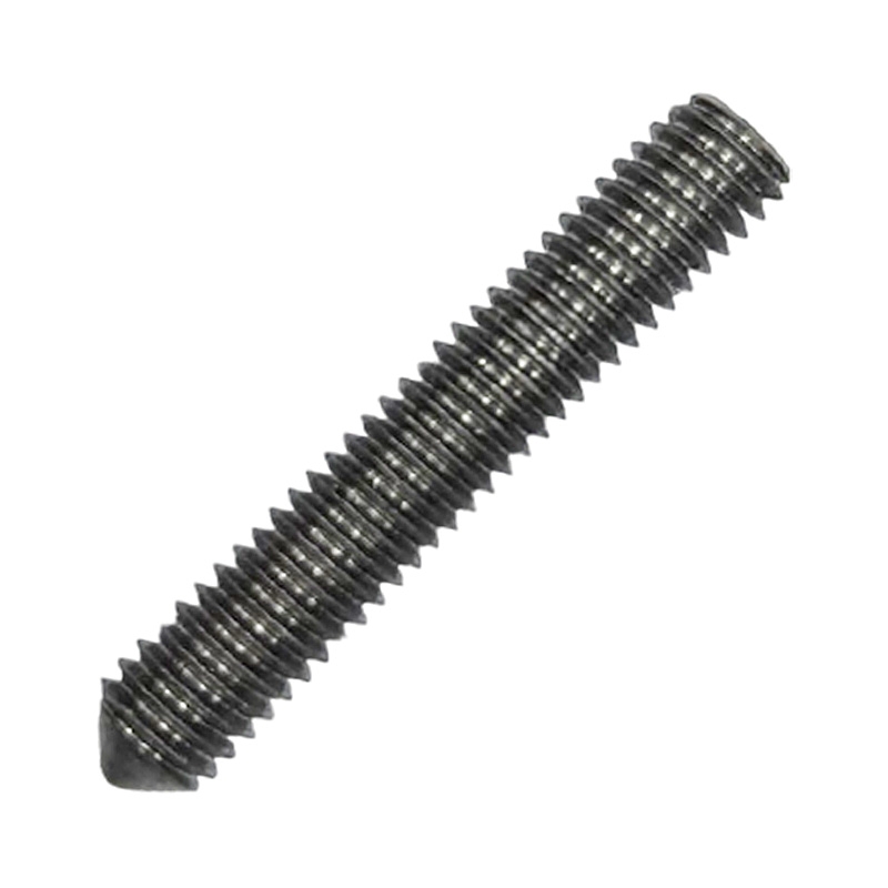 Стопорный винт с коническим концом и прямым шлицем предназначен для создания соединений, которые не работают на растяжение. Он широко используется в машиностроении и приборостроении для фиксации шестерёнок, подшипников, колец, втулок на валах.