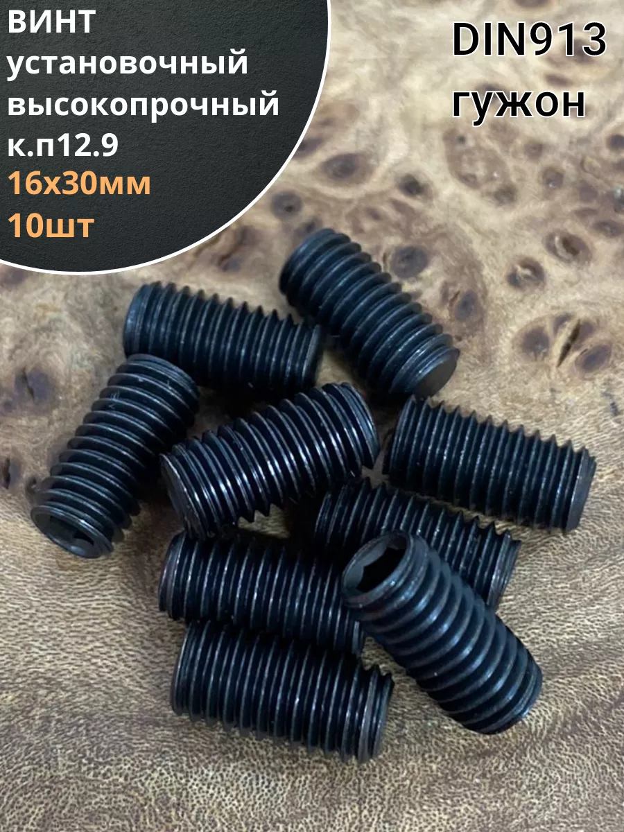 Винт установочный М16х30 мм к.п12.9 DIN913 (гужон) 10шт