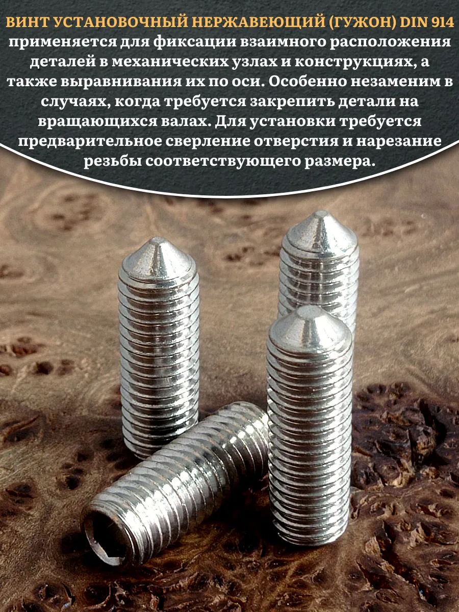 Винт установочный нержавеющий М10х30 DIN914 (гужон), 50 шт.