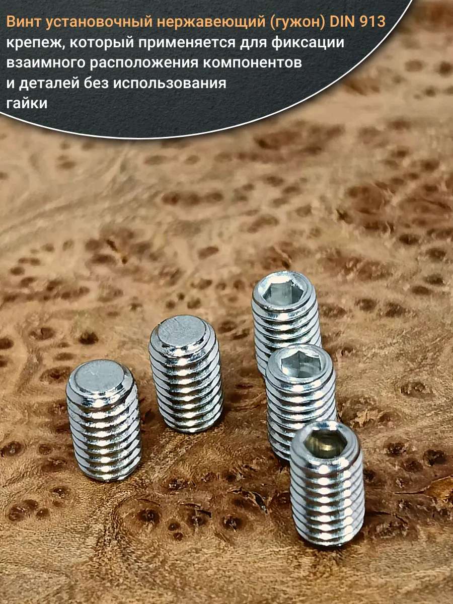 Винт установочный нержавеющий М4х10 DIN913 (гужон), 10 шт.