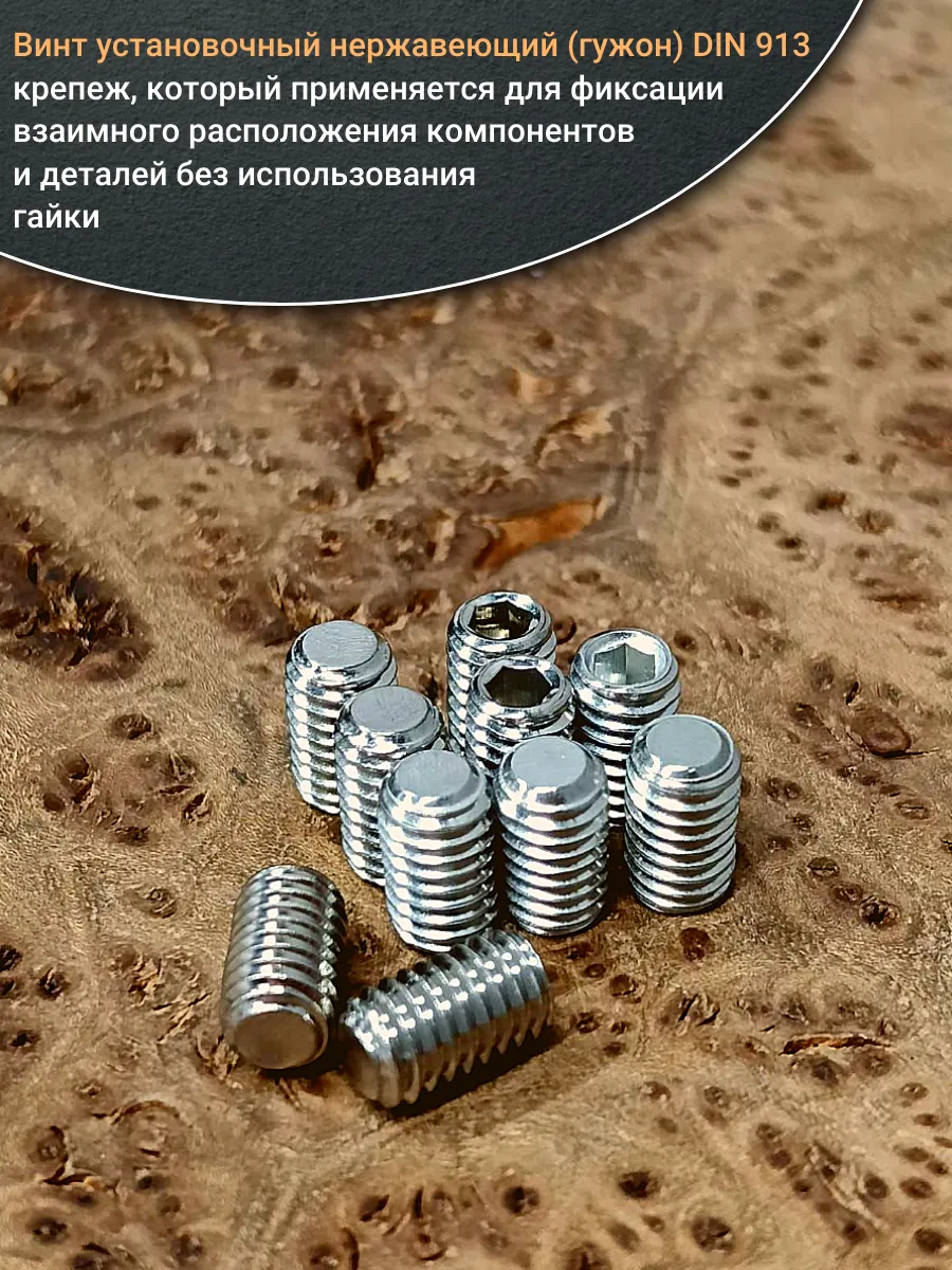 Винт установочный нержавеющий М4х10 DIN913 (гужон), 50 шт.