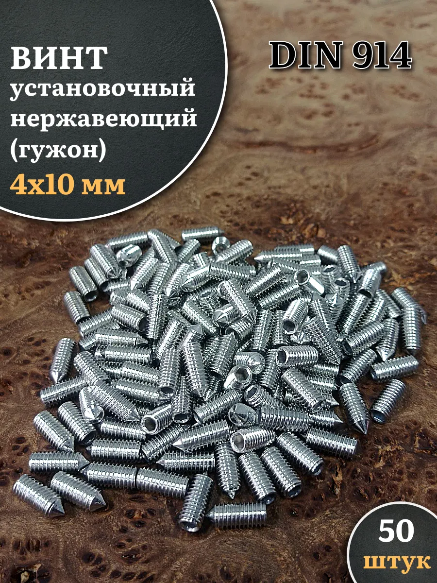 Винт установочный нержавеющий М4х10 DIN914 (гужон), 50 шт.