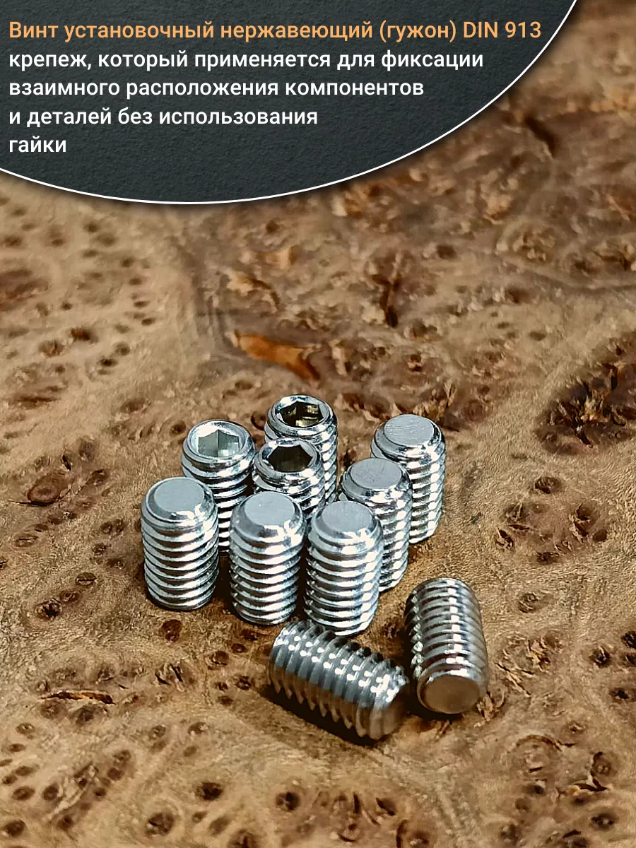 Винт установочный нержавеющий М4х12 DIN913 (гужон), 50 шт.