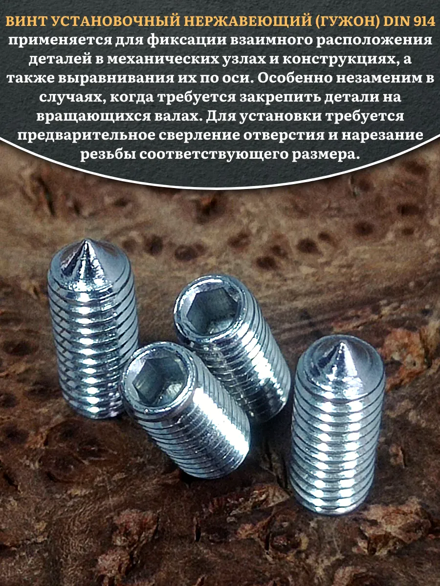 | Винт установочный нержавеющий М4х12 DIN914 (гужон), 50 шт. | МК18598ф50 | 1 шт. |