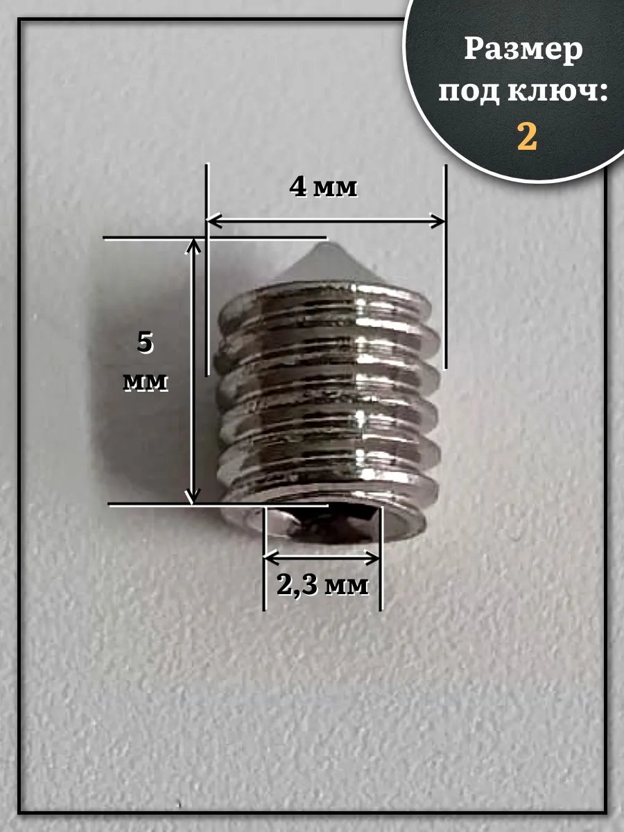| Винт установочный нержавеющий М4х5 DIN914 (гужон), 50 шт. | МК18561ф50 | 1 шт. |