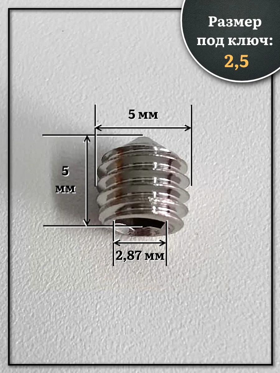| Винт установочный нержавеющий М5х5 DIN914 (гужон), 50 шт. | МК18588ф50 | 1 шт. |