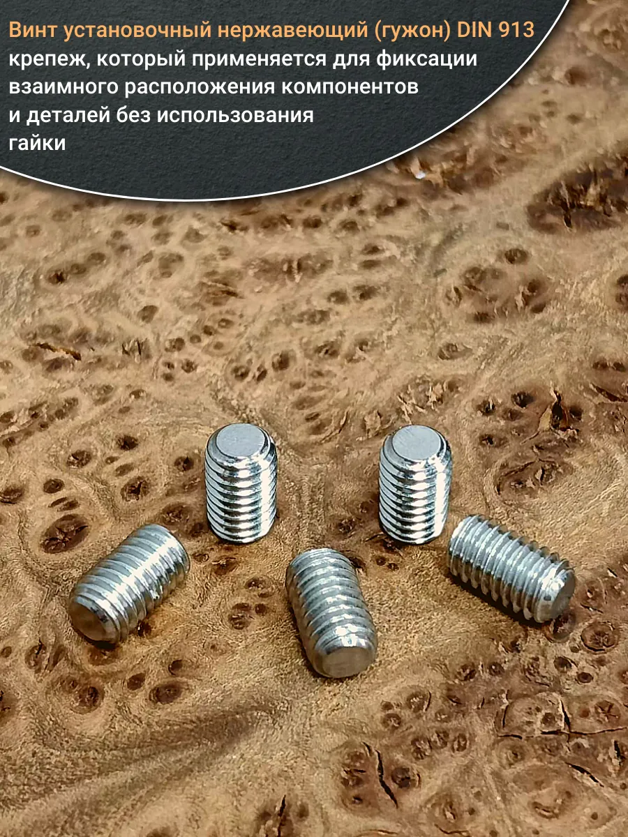 Винт установочный нержавеющий М6х10 DIN913 (гужон), 50 шт.