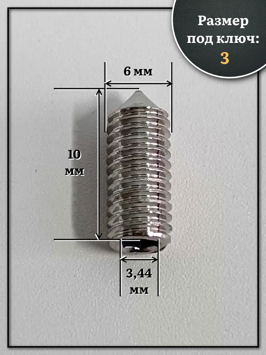 Винт установочный нержавеющий М6х10 DIN914 (гужон), 10 шт.